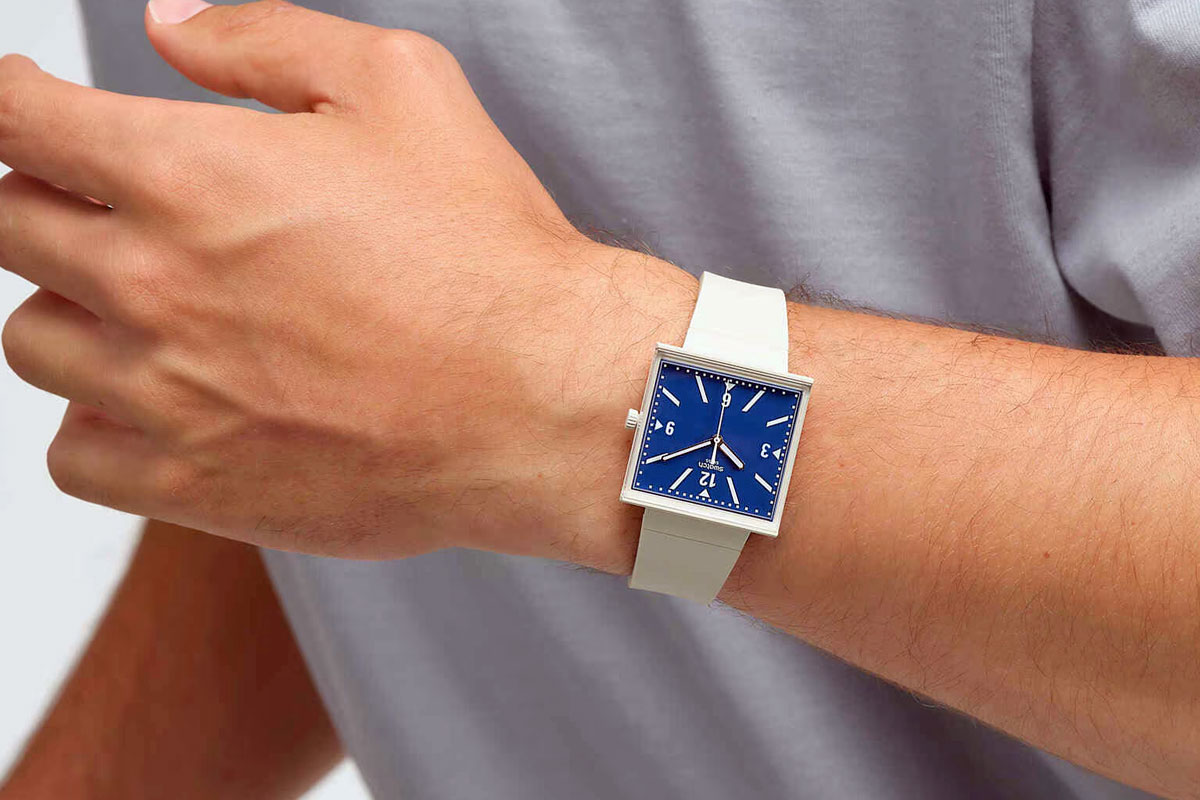 Švýcarský výrobce Swatch uvedl na trh limitovanou edici hodinek s prohozenými čísly 3 a 9. Edice "WHAT IF…TARIFFS?" je ironickou reakcí na 39% clo, které prezident USA Donald Trump minulý měsíc uvalil na dovoz ze Švýcarska. Zdroj: Swatch